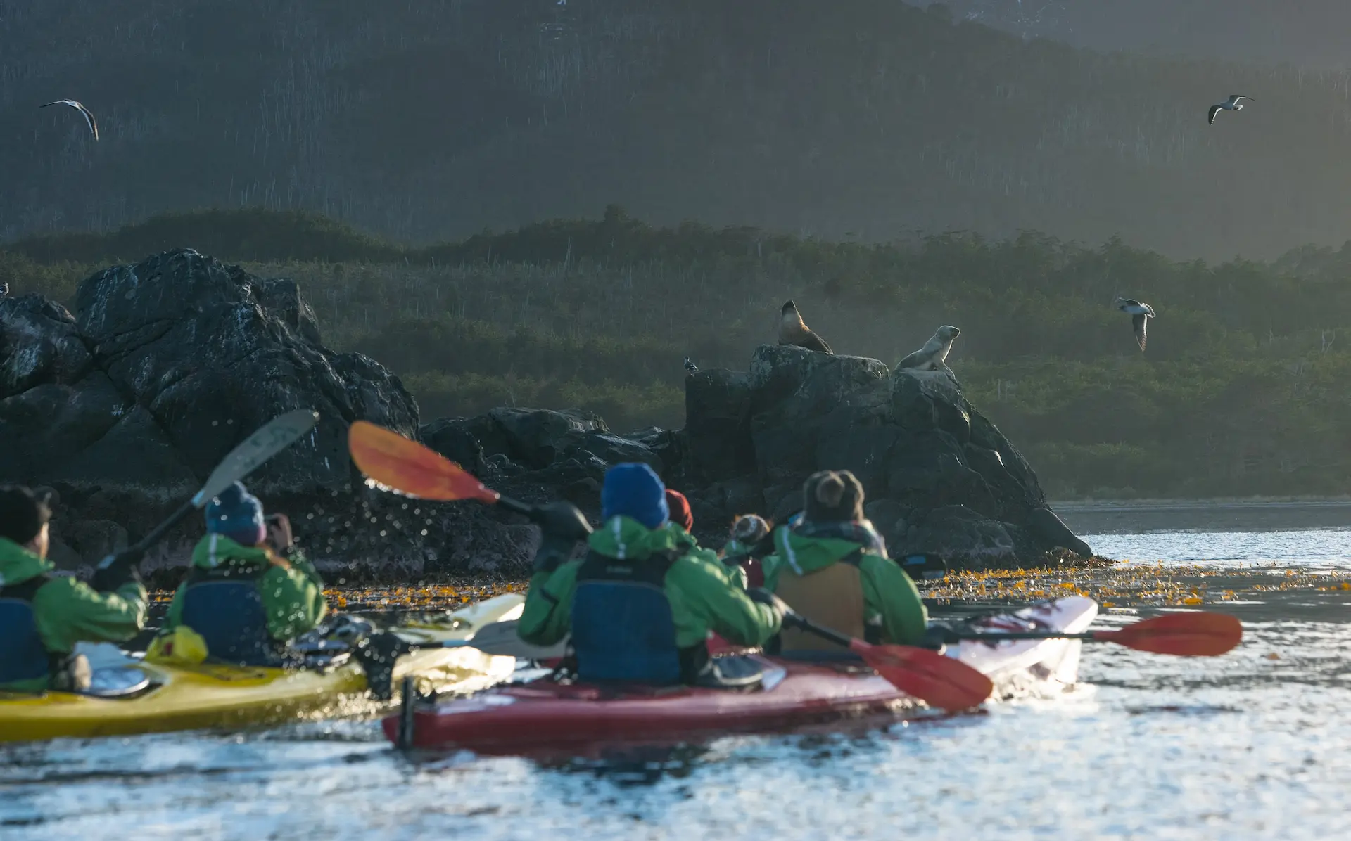Caiaque o dia todo no setor Cabo San Isidro, 70 quilômetros ao sul de Punta Arenas, em um ambiente imaculado, vamos além de onde termina a estrada para veículos, probabilidade muito alta de avistar fauna marinha, com uma paisagem florestal sempre verde chegando ao limite de do mar, em geral é possível avistar golfinhos e muitas aves costeiras.