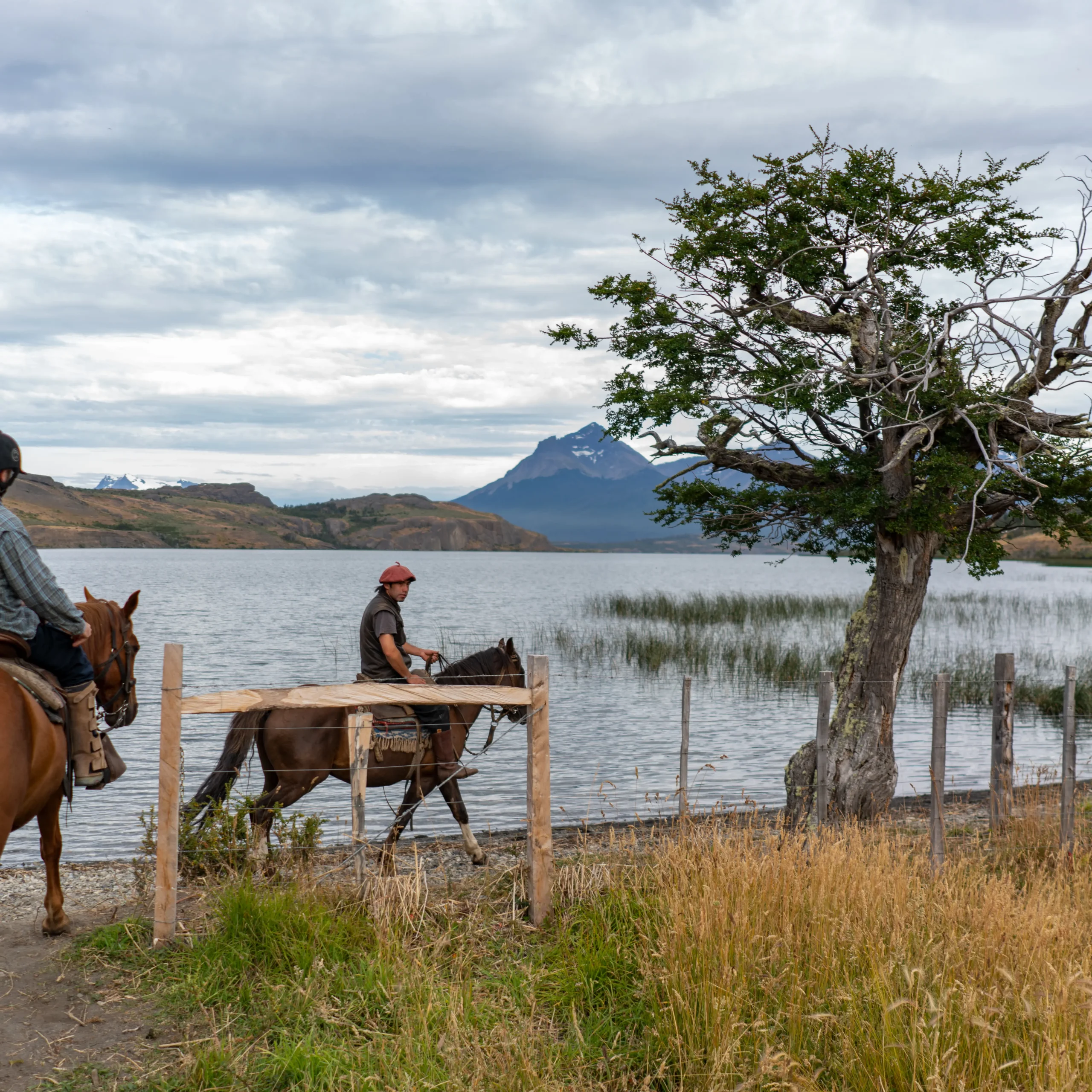 This activity is led by Patagonian baqueanos, skilled experts in the region and horseback riding. These seasoned guides carry a communication radio (frequency 150.125) and a first aid kit to ensure the safety and well-being of participants throughout the journey. Participants are provided with equestrian helmets, leather gaiters, and high-quality saddles equipped with leather saddlebags and handcrafted sheep wool padding for protection and comfort. With this gear, we will embark on the tour, ensuring a safe and enjoyable experience.